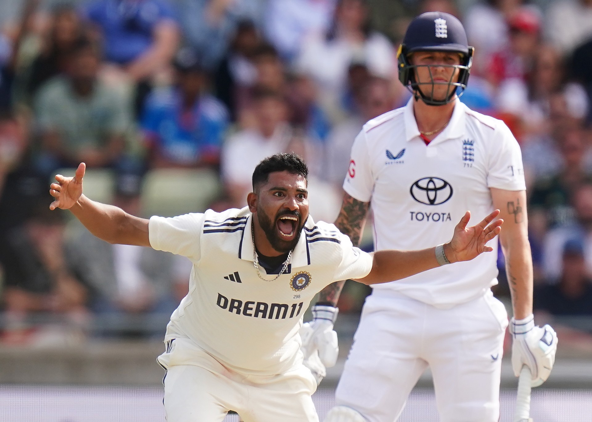 Yeni topu götürdükdən sonra Hindistan, cəmi 44 topda İngiltərənin son beş vicketini 20 xal müqabilində əldə edərək, meydan sahiblərini 407 xalla oyundan kənarlaşdırdı. Bruk və Smit bu xalların 342-sini təmin etmişdi. İngiltərə ümumilikdə diqqətəlayiq altı batsmenin “sıfır xalla” çıxışını qeydə aldı. Sirac isə 6-70 xal ilə yekunlaşdırdı. Qısa müddət sonra Harri Bruk Akash Deep (4-88) tərəfindən vuruş meydançasından kənarlaşdırıldı. Bu, İngiltərənin sıradakı batsmenlərinin, doqquzuncu yerdən on birinci yerə qədər – Braydon Kars, Coş Tanq və Şaoib Bəşir – hamısının “sıfır xalla” oyundan çıxmasına səbəb oldu. Beləliklə Bencamin Daket, Olly Pop və Stokesə qoşuldular.