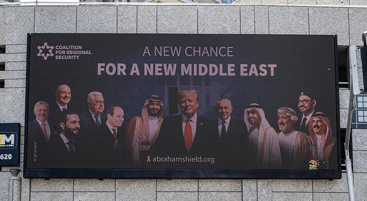 Afişdə həmçinin, İsrailin Fələstinin müstəqil dövlət kimi tanınmasına qarşı çıxdığı bir şəraitdə, Orta Şərqdə sülh üçün atılan addımlar kimi qiymətləndirilən “Abraham Razılaşmaları”nı imzalayan Bəhreyn, Birləşmiş Ərəb Əmirlikləri (BƏƏ) və Mərakeş liderlərinin də şəkilləri əks olunub. Afişdə “Yeni Orta Şərq üçün Yeni Bir Şans” ifadəsinin istifadə edilməsi regional sülh və əməkdaşlığa dair ümidləri əks etdirir. ABŞ-ın keçmiş prezidenti Donald Trampın Yaxın Şərq üzrə xüsusi nümayəndəsi Stiv Vitkoff qısa müddət əvvəl “Abraham Razılaşmaları”na qoşulan ölkələrlə bağlı böyük bir elan verəcəklərini bildirmişdi. Vitkoff “Bir çox ölkədə normallaşma gözləyirik” demişdi. İsrail “Abraham Razılaşmaları” çərçivəsində əvvəlcə BƏƏ və Bəhreynlə, daha sonra Sudan və Mərakeşlə diplomatik əlaqələr qurmuşdu.